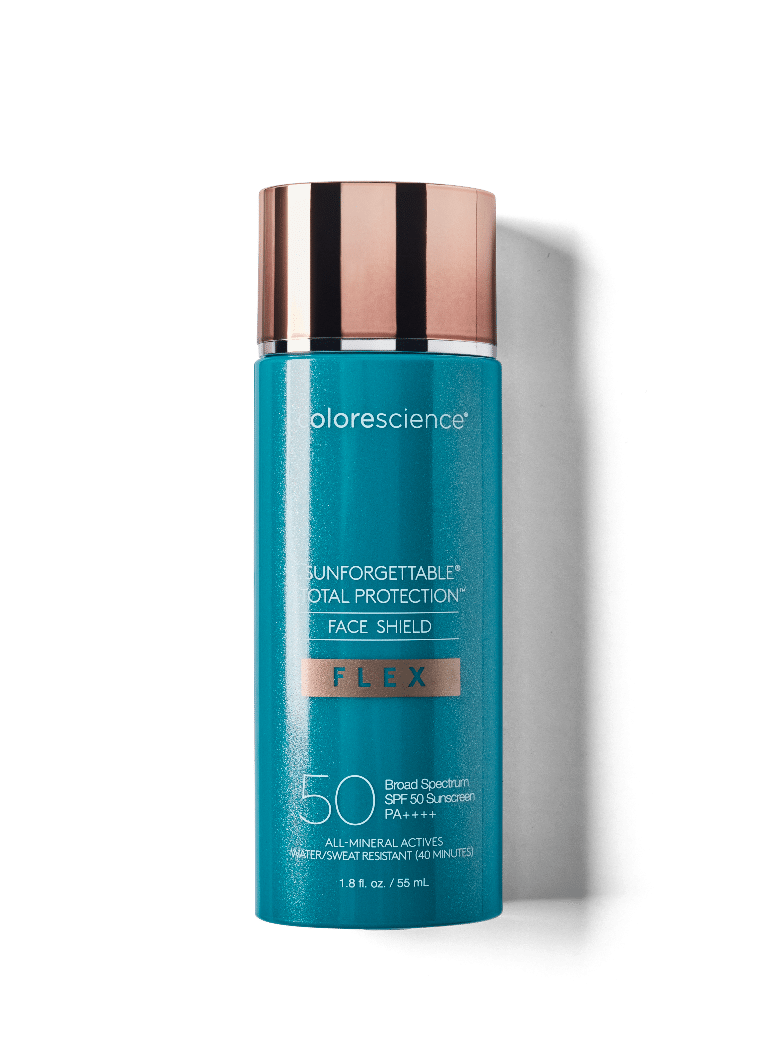 The Colorescience Sunforgettable® Total Protection™ Face Shield Flex SPF 50 (Tan) blends high-performance mineral sun protection with adaptive pigments that flex to your tone, leaving a radiant, natural finish.