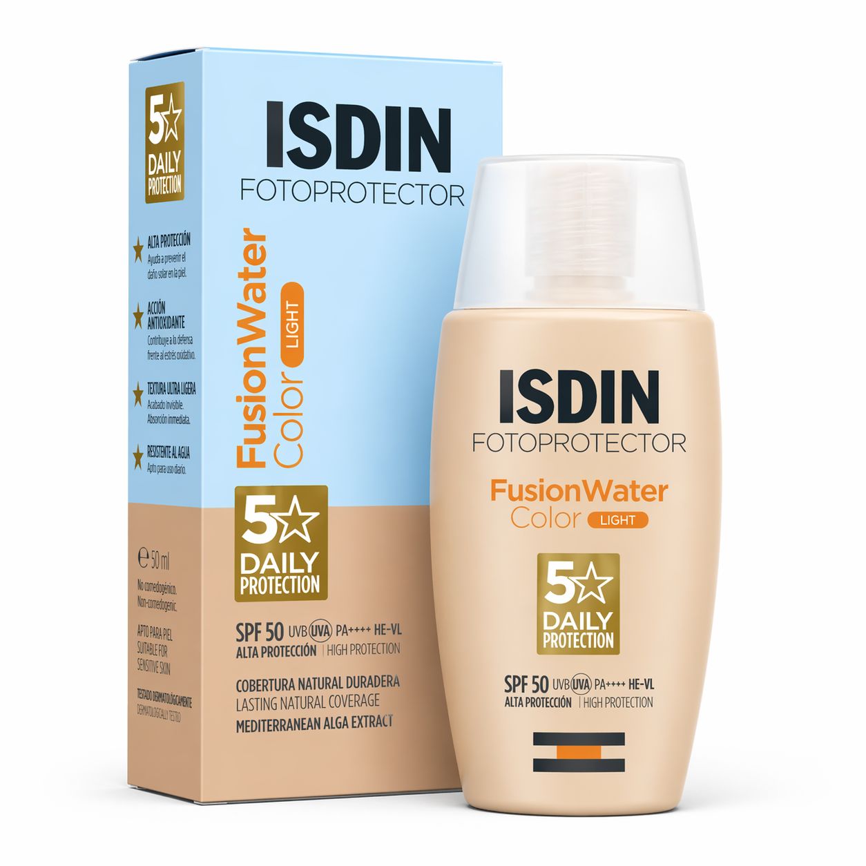 ISDIN Fotoprotect Fusion Water SPF 50 is a lightweight, water-based sunscreen with a subtle tint that blends seamlessly for a smooth, natural finish.