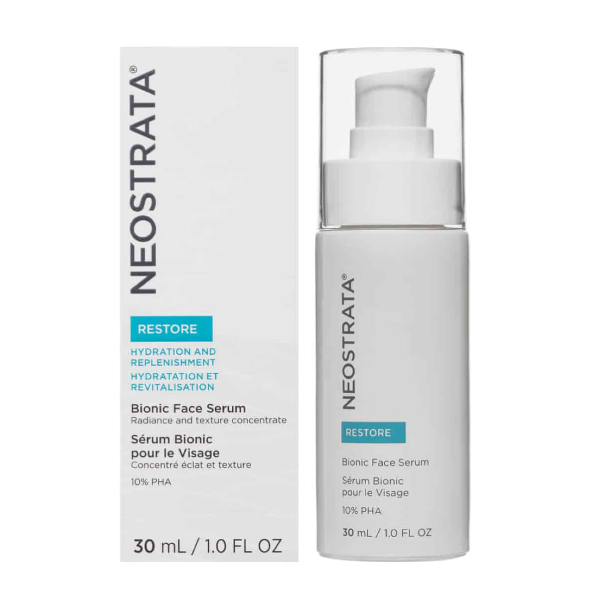 Neostrata Restore Bionic Face Serum hydrates, smooths and boosts radiance with PHAs and antioxidants – ideal for sensitive, stressed, or dry skin.